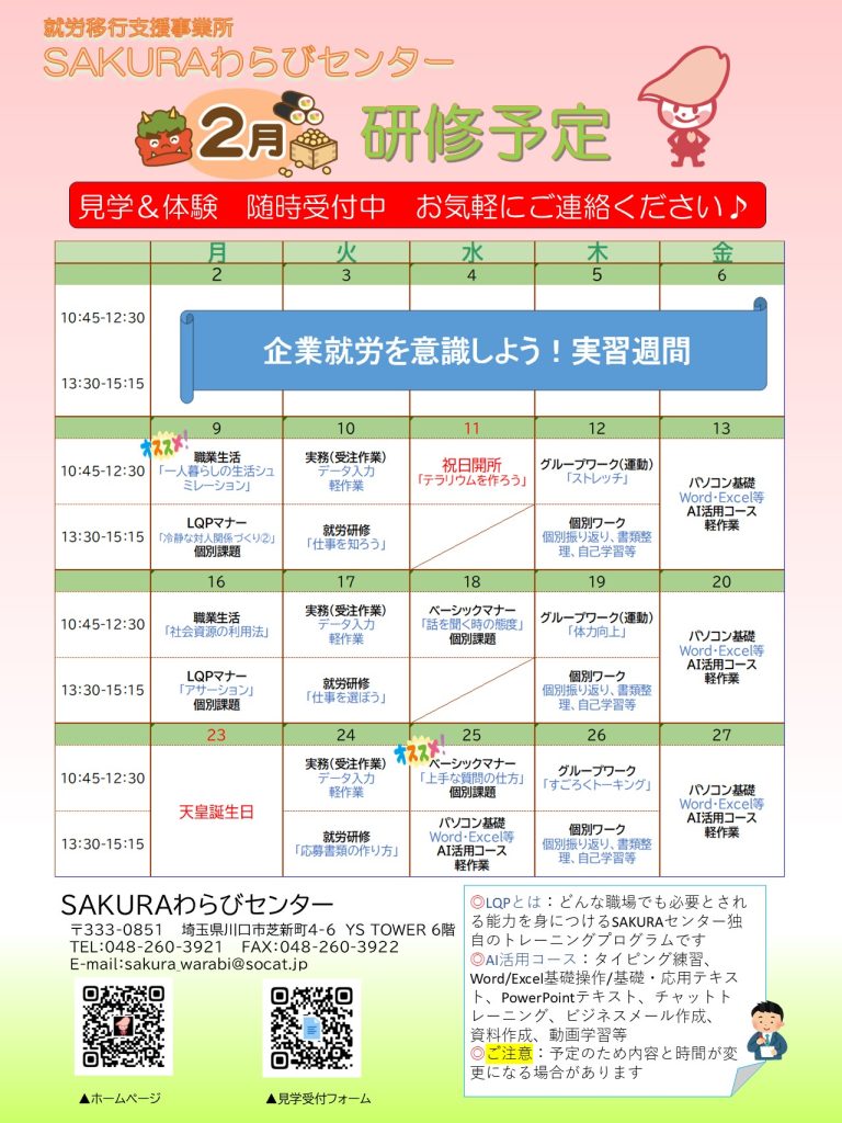 ▽本日はSAKURAわらびセンター2月カリキュラムのお知らせです▽
