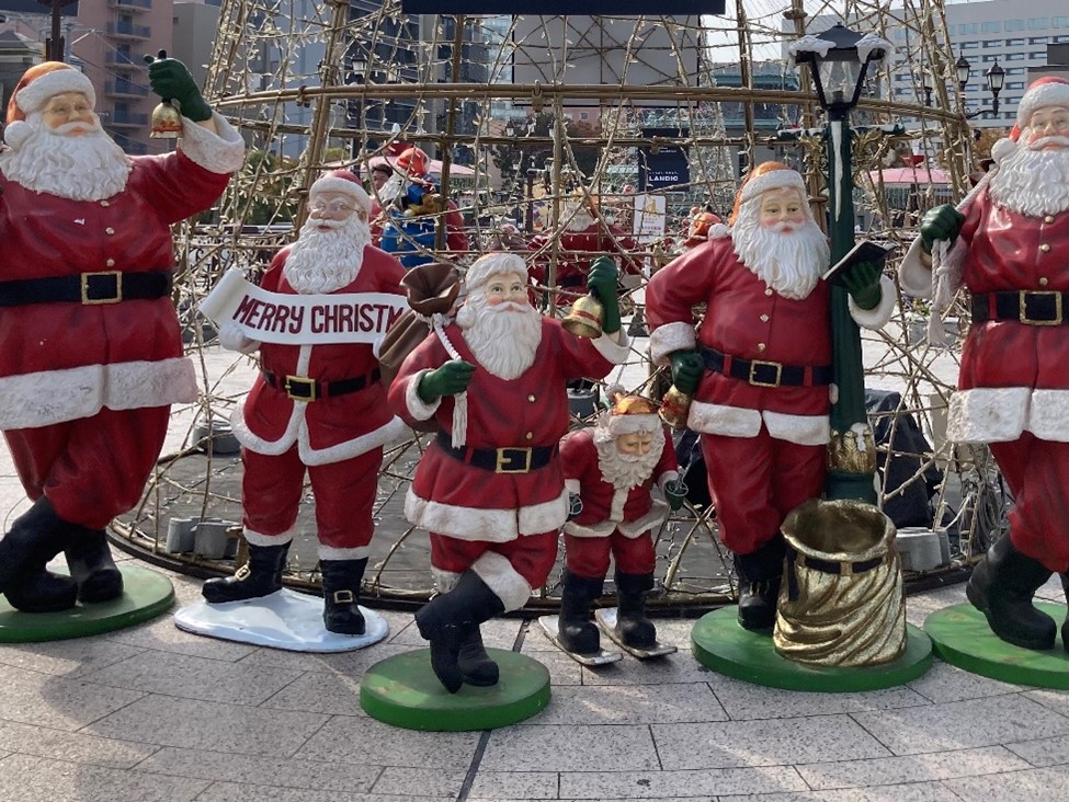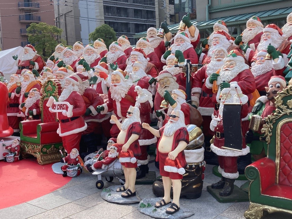 最後に、クリスマスマーケットの場所を通って色々なサンタに出会いました。
