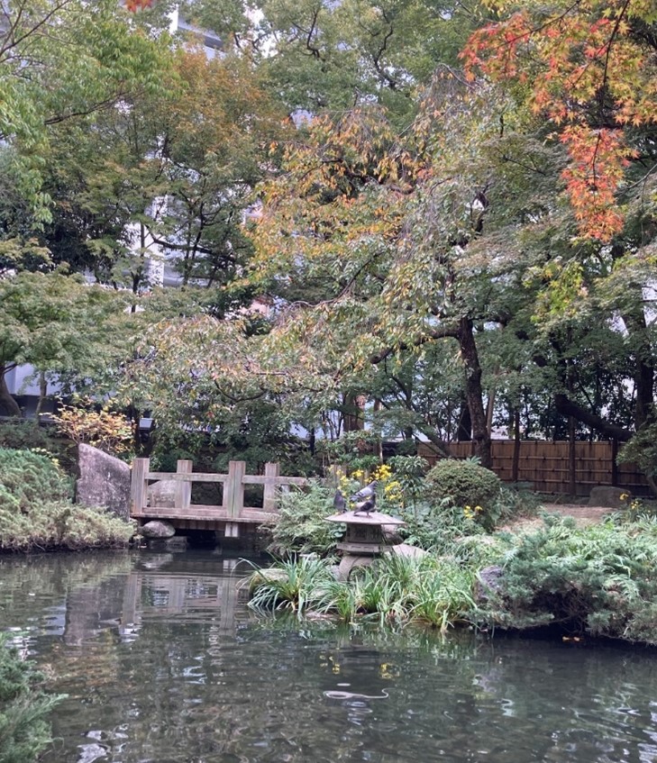 紅葉はまだ色づき始めといった様子でしたが、日本庭園ならではの落ち着いた雰囲気で心地よく過ごせました。都会の中とは思えない静かな空間と滝の音に癒されました。