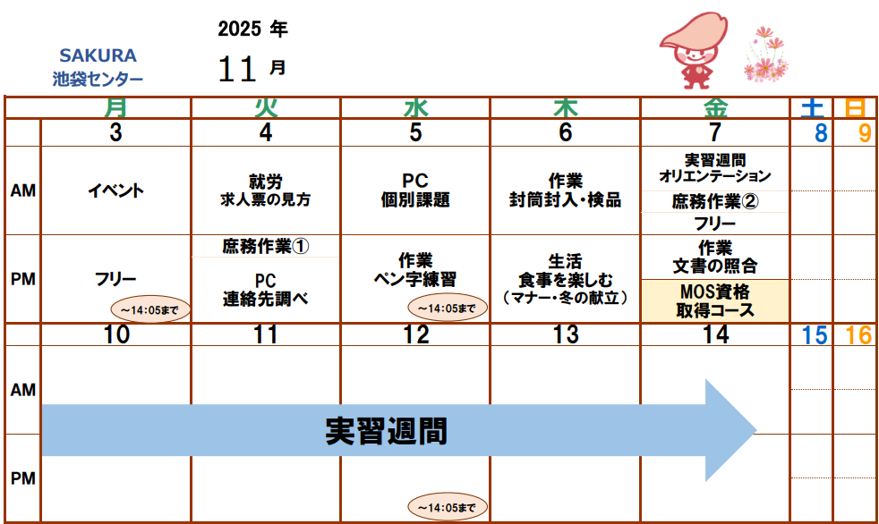 11月は2週目に実習週間が行われます。