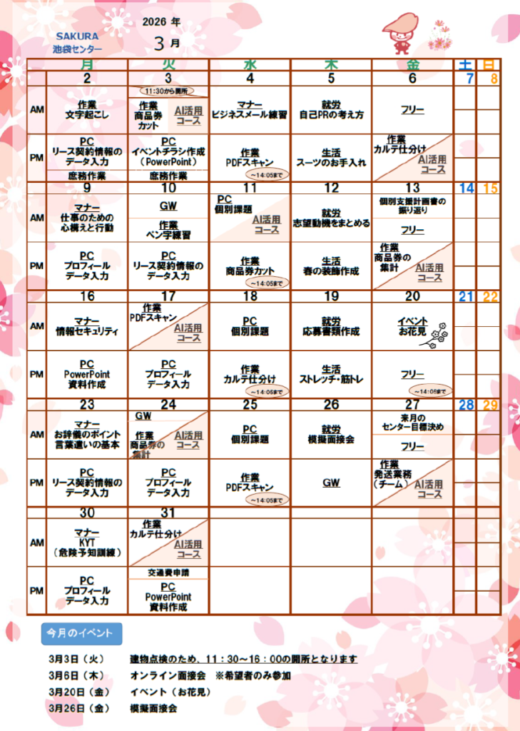 【池袋】3月のカリキュラム紹介