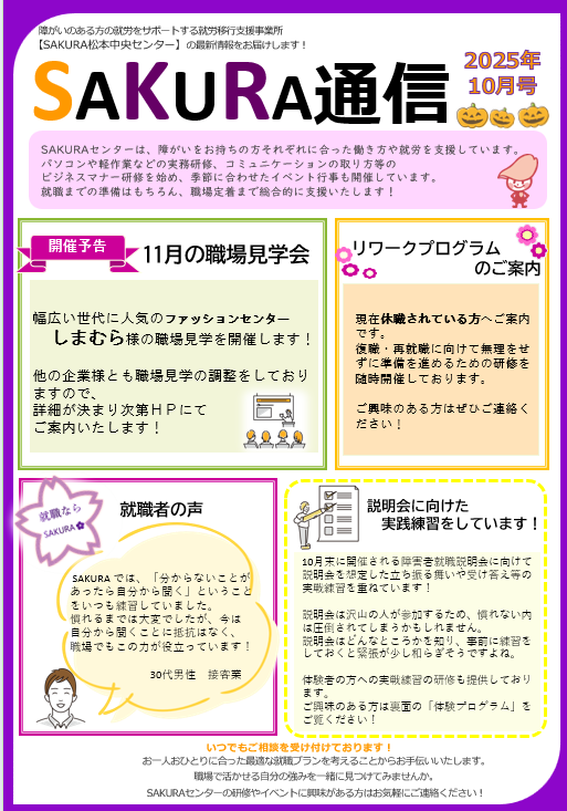 SAKURA松本中央センターには、就職に向けて頑張っている利用者様が数多くいらっしゃいます。