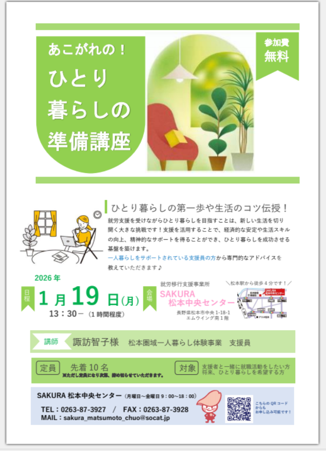 一人暮らしの準備講座を行います!