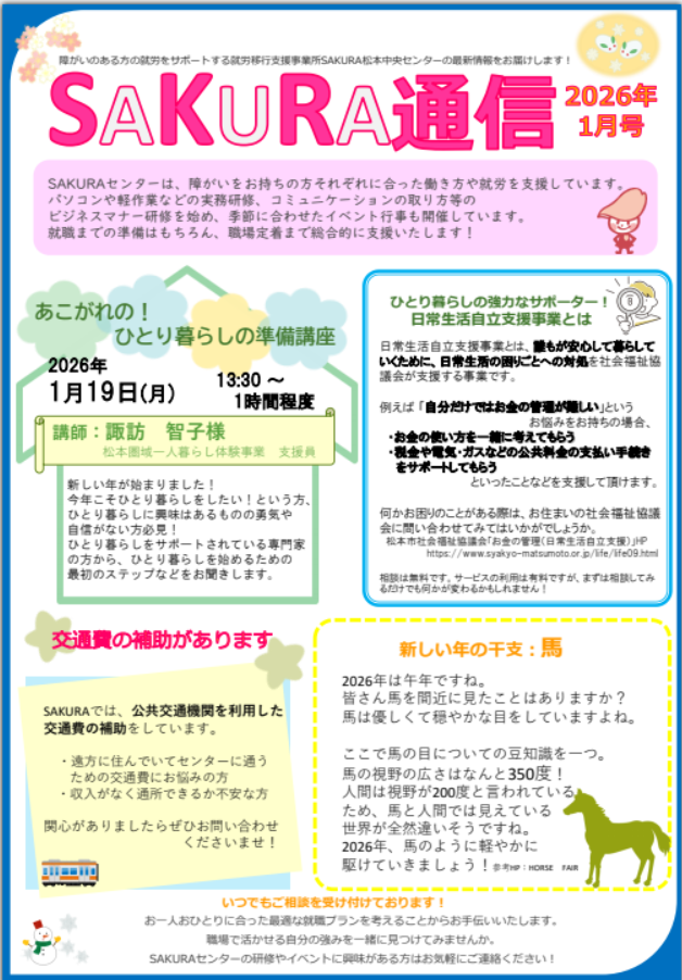 SAKURA松本中央センターには、就職に向けて頑張っている利用者様が数多くいらっしゃいます。