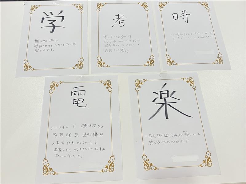 昨年末になりますが納会の中で、今年の漢字を考え発表していただきました。