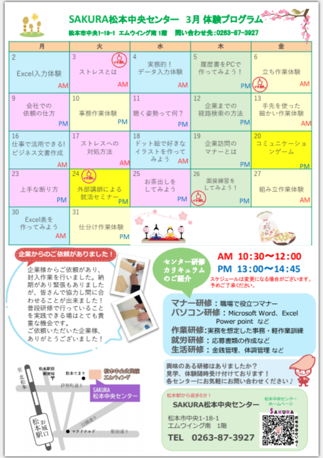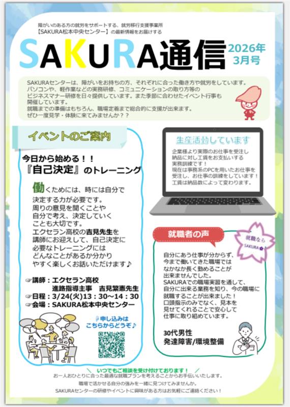 SAKURA松本中央センターには、就職に向けて頑張っている利用者様が数多くいらっしゃいます。