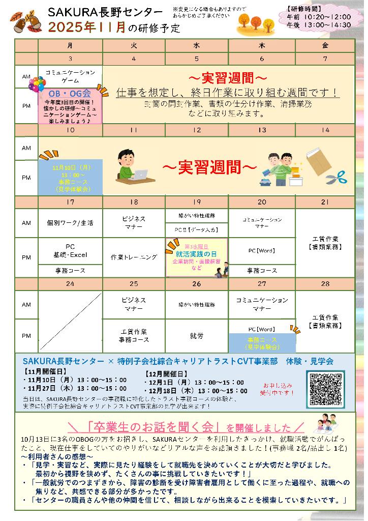 さて、11月は長野センターでは恒例の『実習週間』があります!