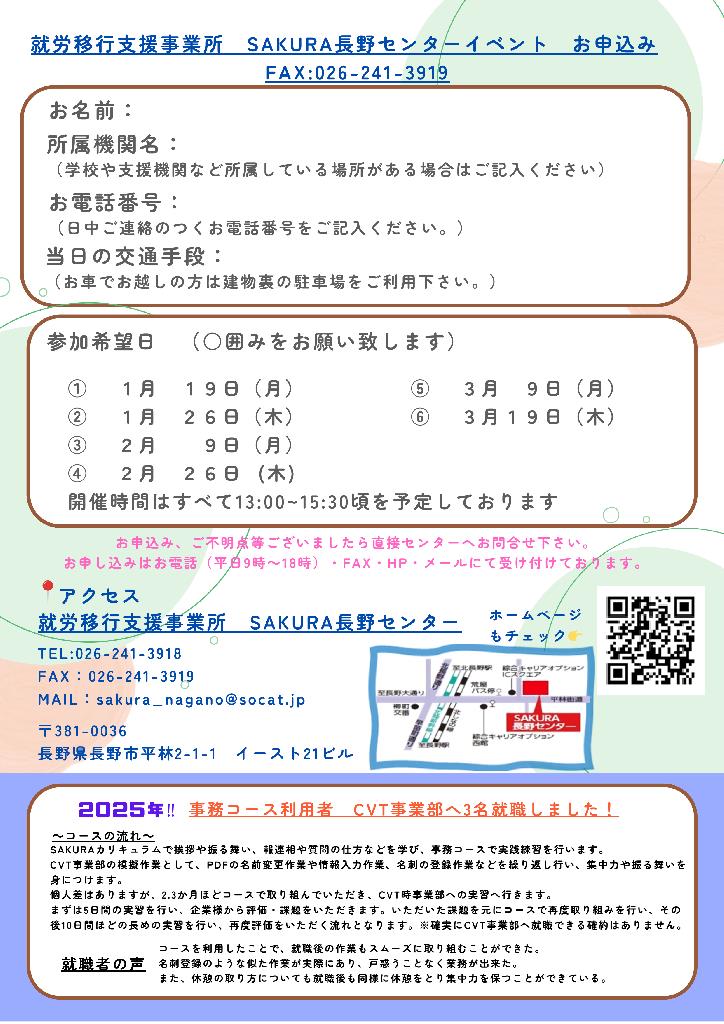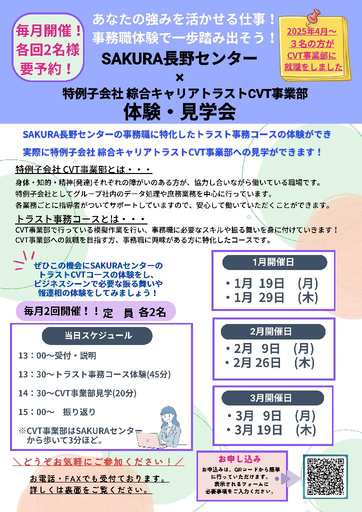 CVT事務コース体験・見学1月~3月の予約開始しています!