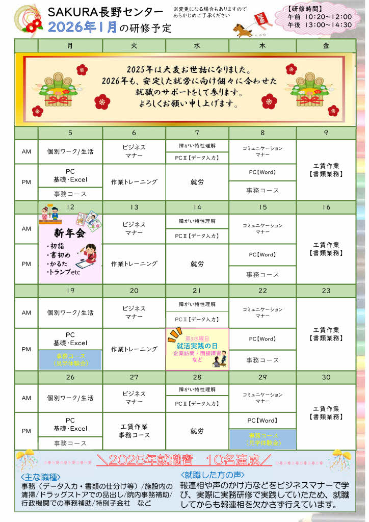 本年もSAKURA長野センターをご利用いただき、誠にありがとうございました。