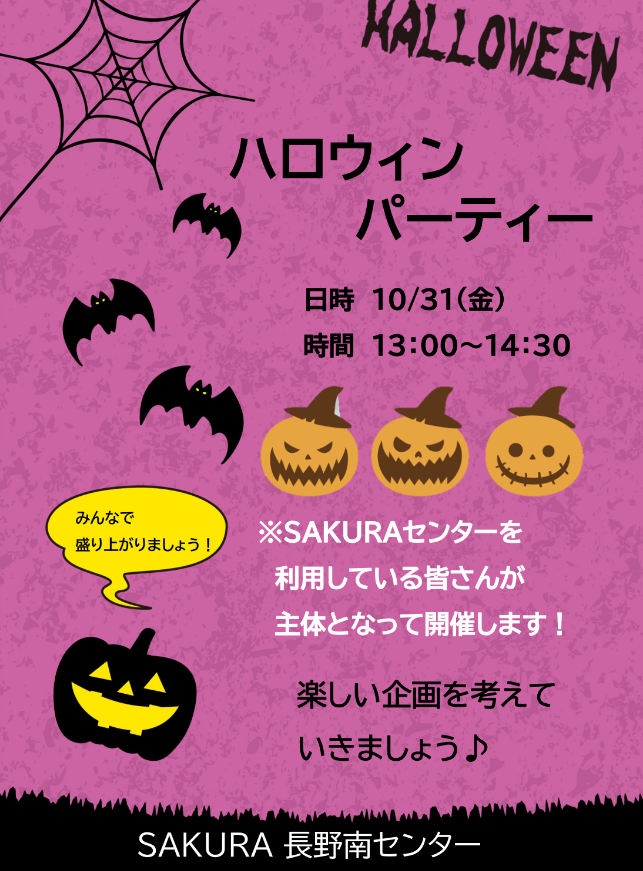 10月31日(木)、SAKURA長野南センターではハロウィンパーティーを開催します!