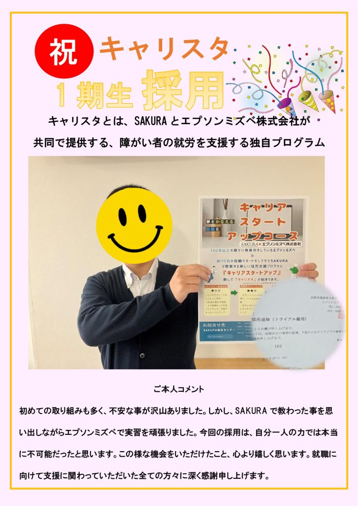 第1期挑戦メンバーが、エプソンミズベ様への就職を決めることができました!!!