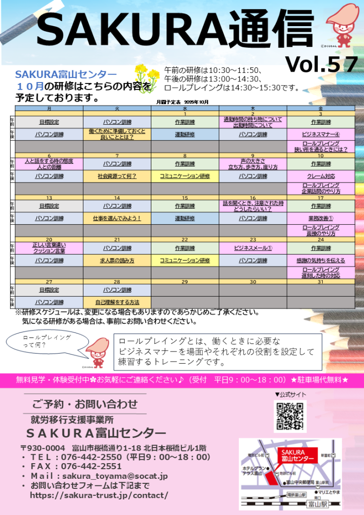 富山市桜橋通りにあります(富山駅から徒歩5分!)、障がいのある方の就職をサポートしています就労移行支援事業所SAKURA富山センターの支援員です。