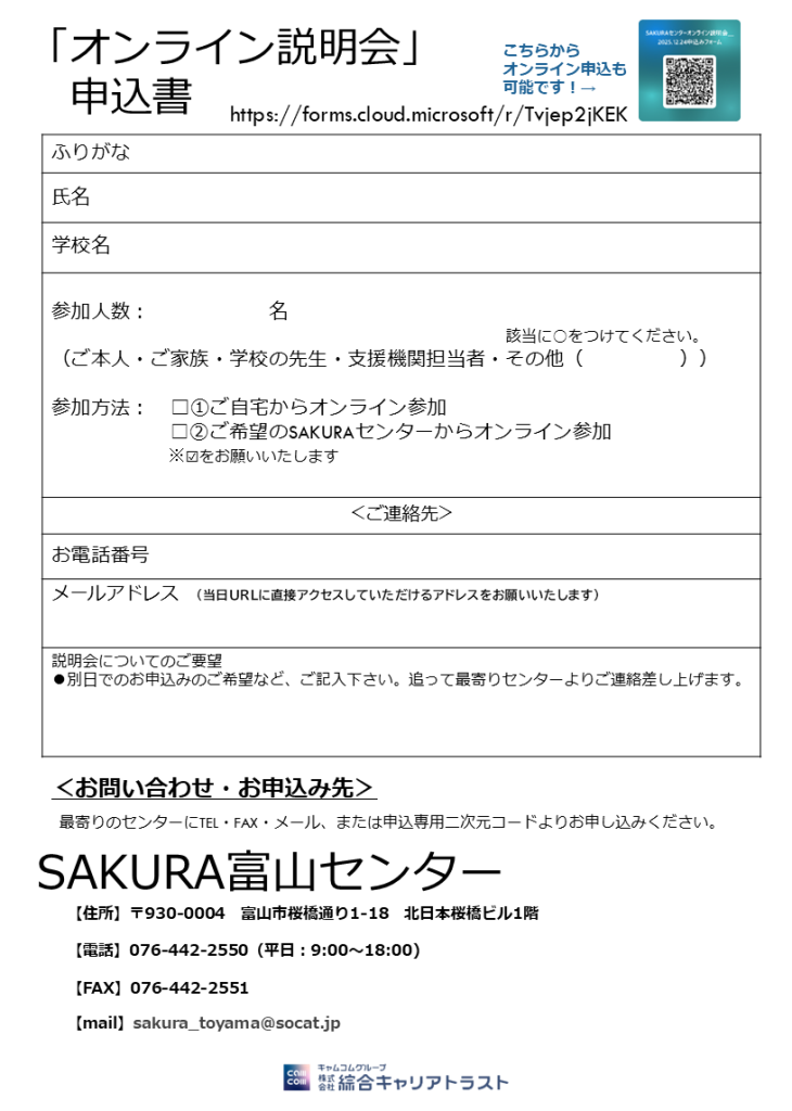 ② SAKURA富山センターに来所してオンライン参加