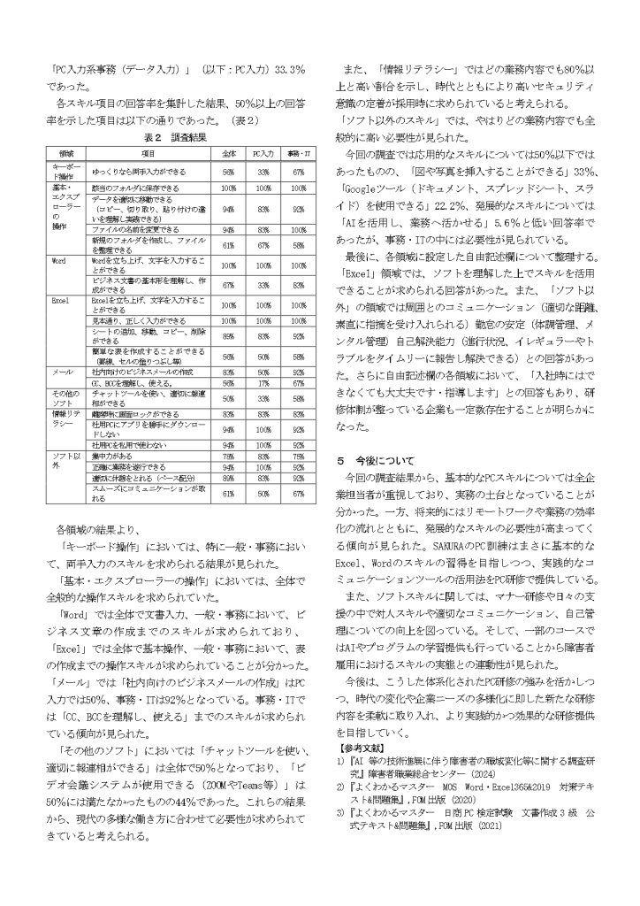 「障害者雇用におけるPCスキルの実態と、SAKURAセンターの訓練との連動性」