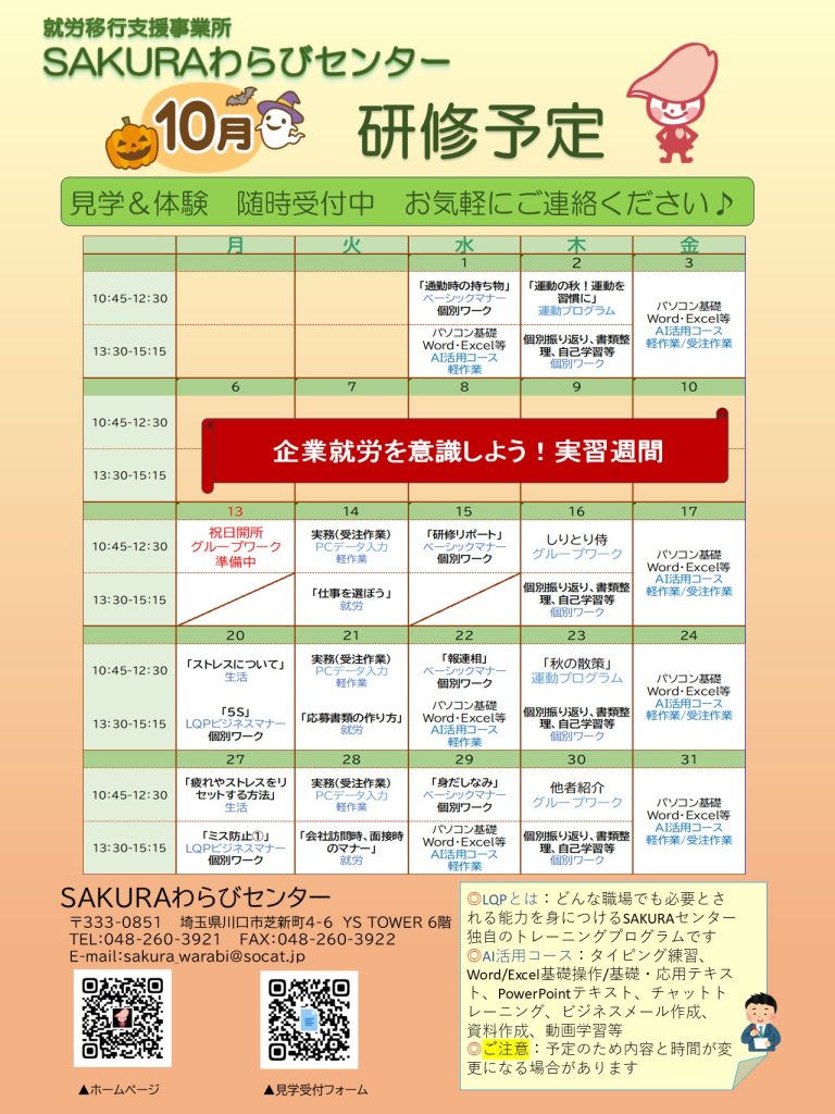 ▽本日はSAKURAわらびセンター10月カリキュラムのお知らせです▽
