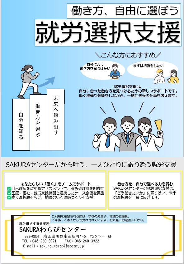 ▽本日はSAKURAわらびセンター【就労選択支援事業】のお知らせです▽