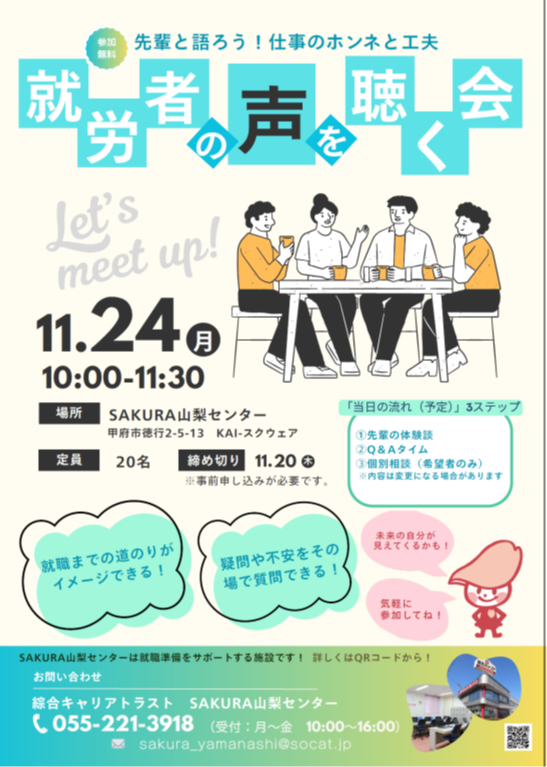 来る11月24日(月)10:00より【就労者の声を聴く会】を開催いたします。